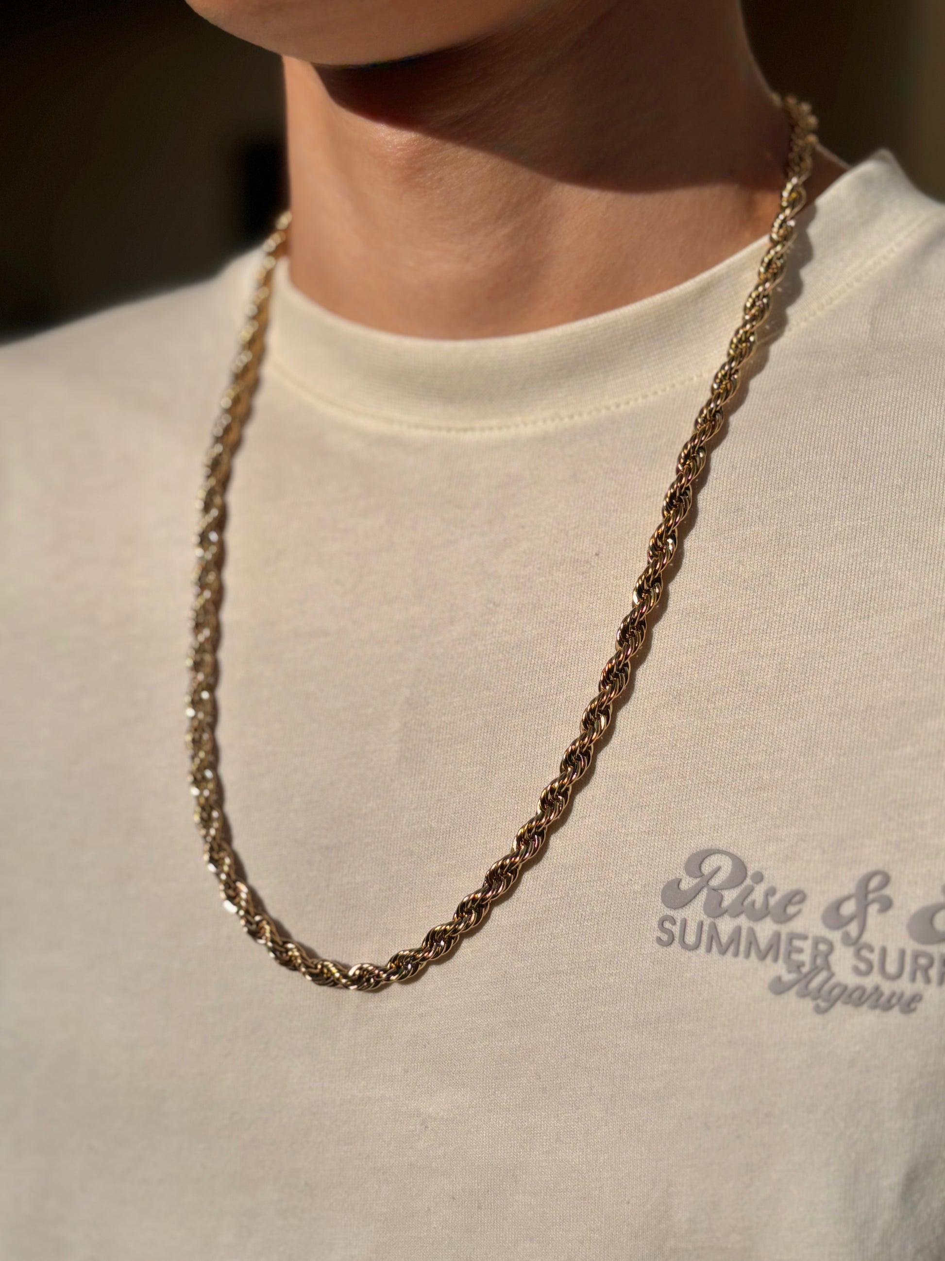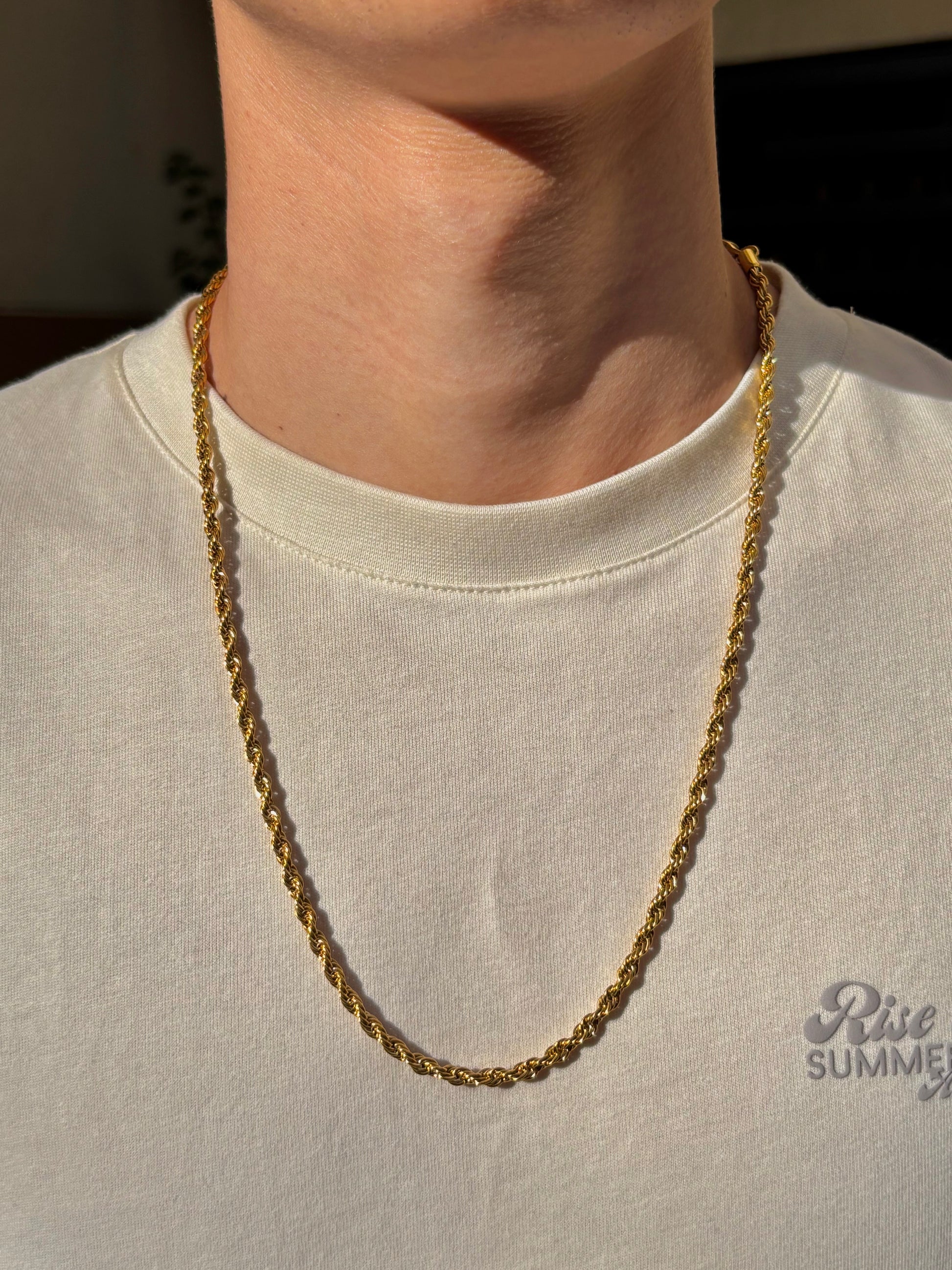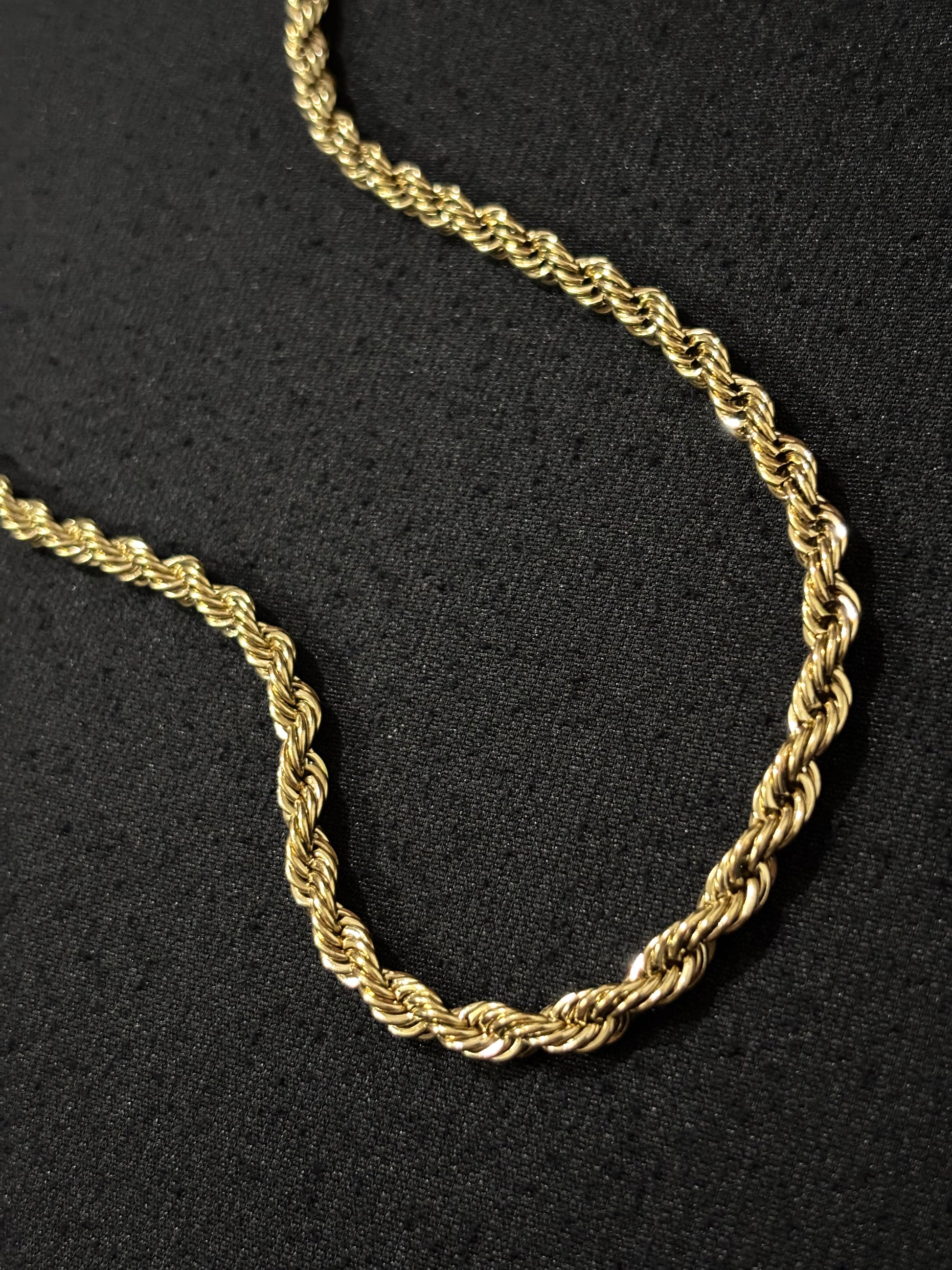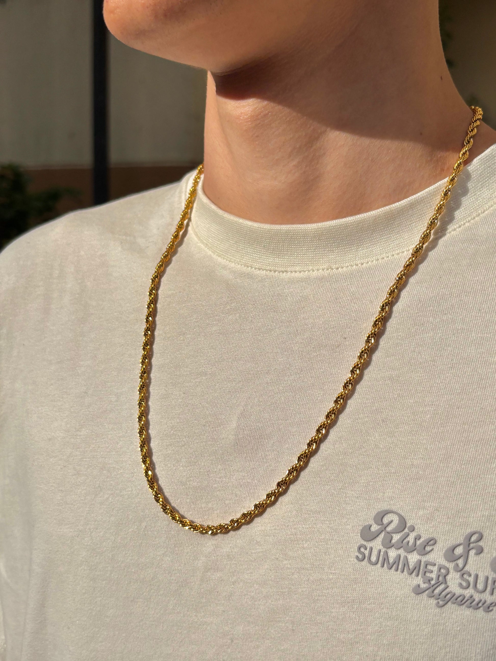 Cadena Lazo en oro laminado de 18K, con un tejido entrelazado que resalta por su delicadeza y aporta finura al estilo. Su broche 18K contramarcado garantiza calidad y confianza, haciendo de esta pieza una elección elegante y distintiva.