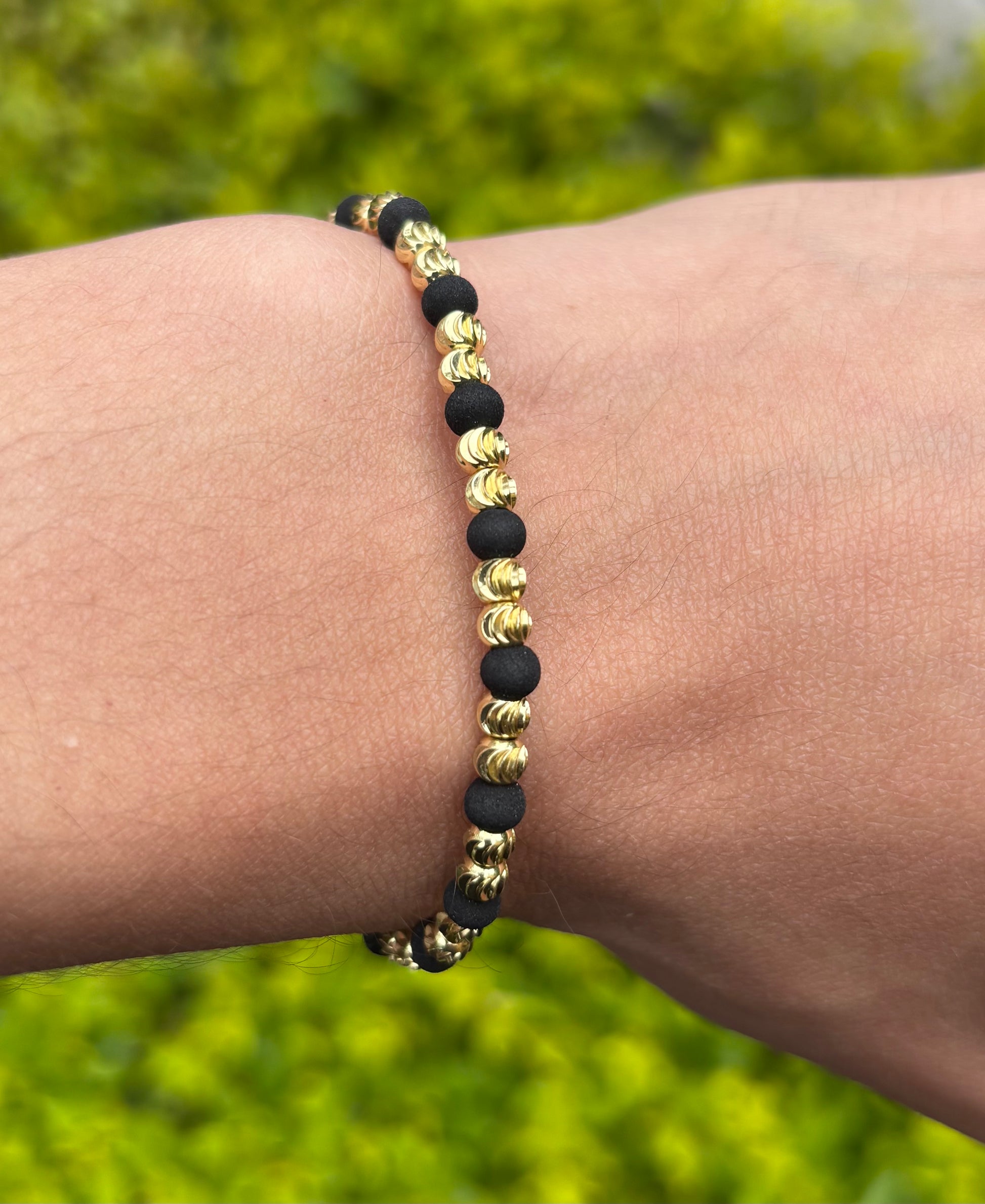 Manilla con balín italiano en oro laminado 18K, de los más apetecidos y difíciles de conseguir. Su brillo especial y diseño elegante la convierten en una pieza única que roba miradas y nunca pasa desapercibida.