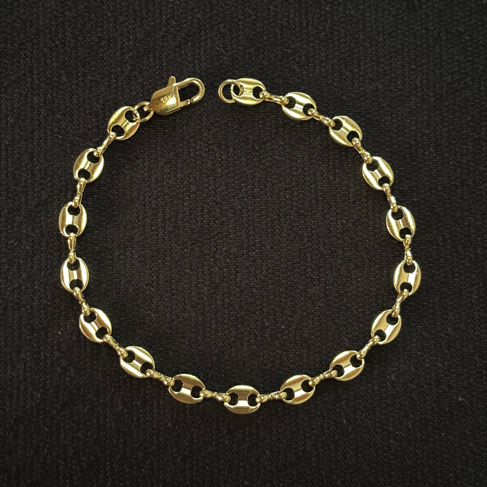 Pulsera Gucci en oro laminado de 18K. Una joya de diseño imponente, donde cada eslabón ovalado refleja elegancia y carácter. Su acabado meticuloso y el broche 18K contramarcado la consolidan como una pieza de distinción, creada para el hombre que valora el lujo auténtico en los detalles.