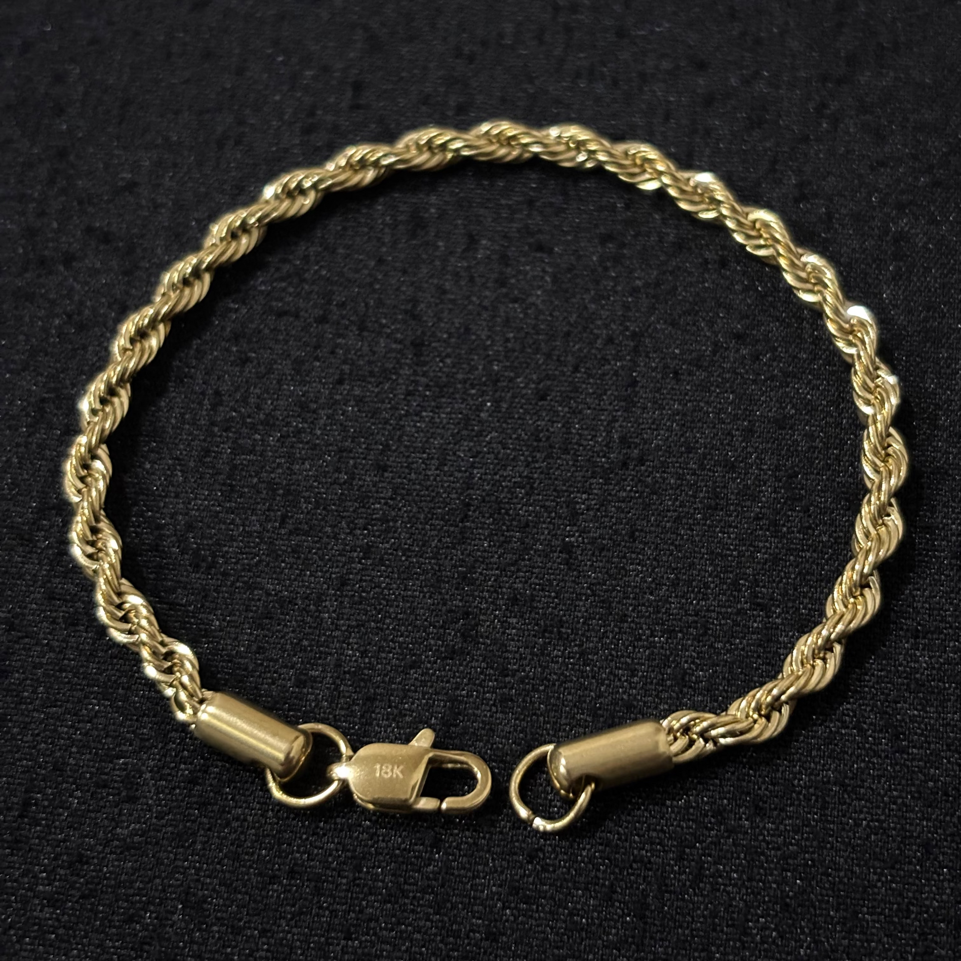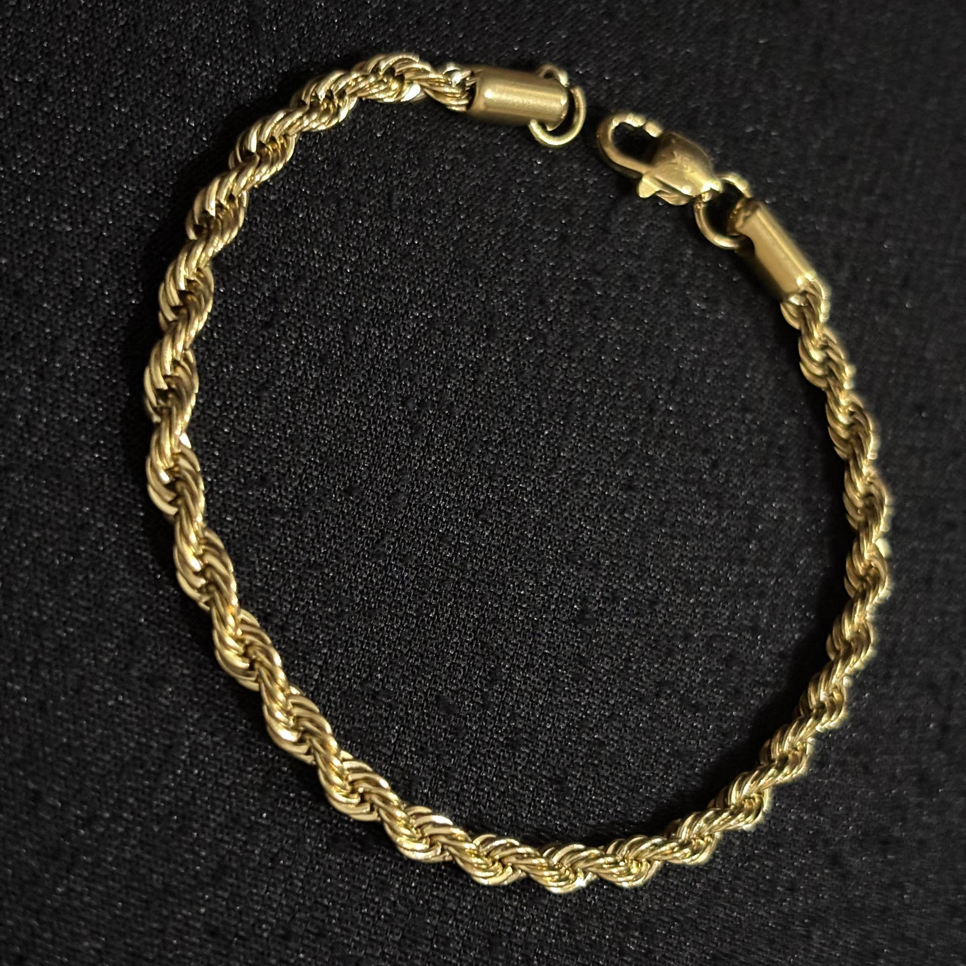 Pulsera Lazo en oro laminado de 18K. Un diseño trenzado que combina solidez y distinción, proyectando elegancia en cada detalle. Su acabado impecable y el broche 18K contramarcado la convierten en una pieza de carácter único, hecha para el hombre que aprecia la verdadera exclusividad.